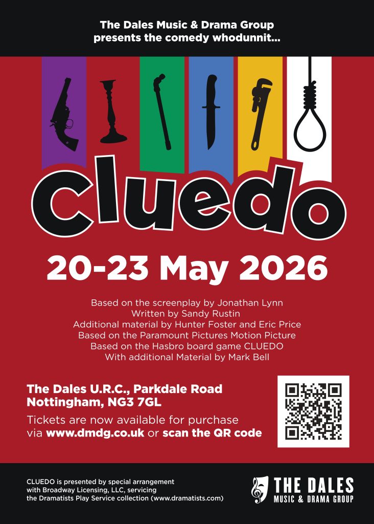 Welcome to The Dales Music and Drama Group, we are a friendly and welcoming amateur theatre group based in Nottingham. We usually perform two shows a year; performing a variety of shows including (but not limited to) pantomimes, musicals, comedies and murder mysteries. We meet nearly every Thursday 19:30 till 21:30 at The Dales United Reformed Church.
